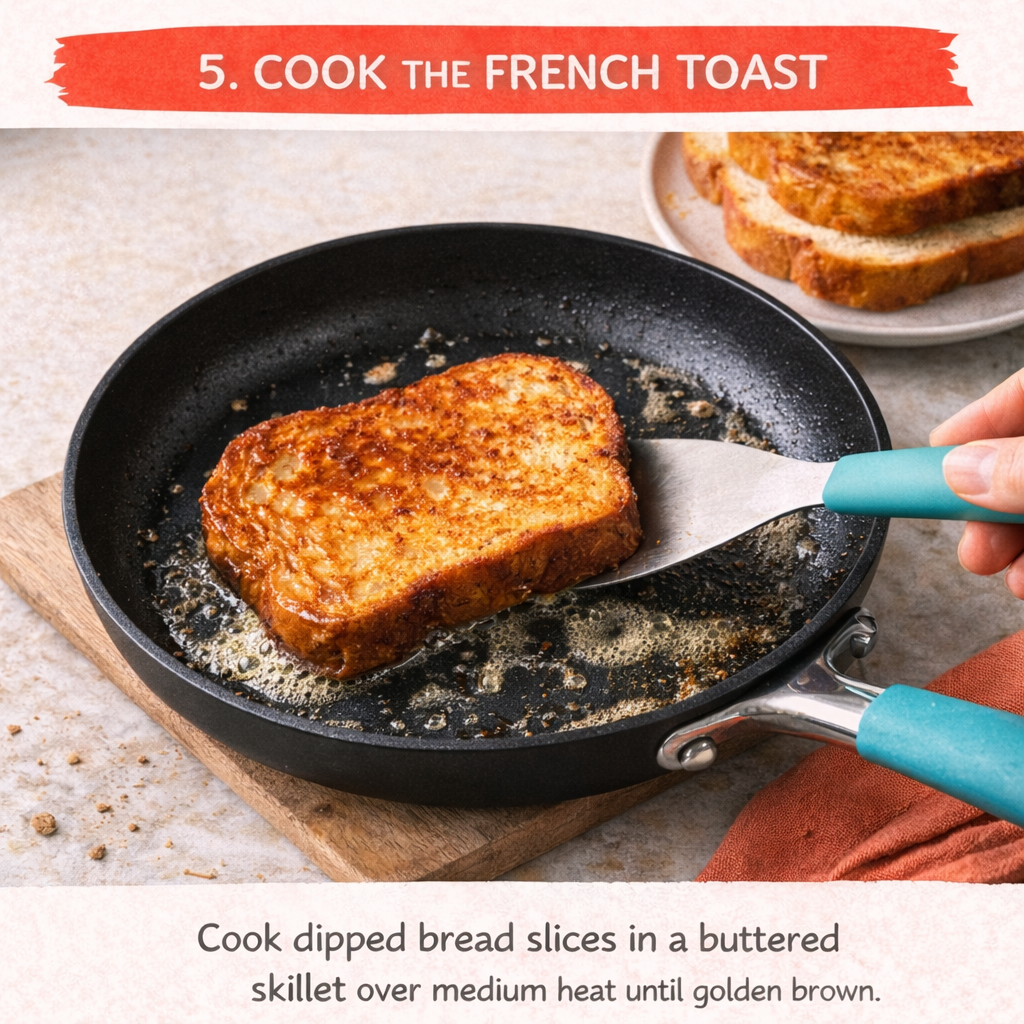 - Use a Cast-Iron Skillet: A heavy-bottomed pan or cast-iron skillet gives the French toast an even, golden crisp.